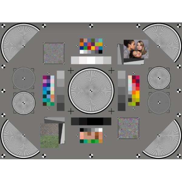 The YE042 v2 Resolution Test Target is for the analysis of resolution, texture reproduction, acutance, dynamic range, noise, color reproduction, distortion, shading, chromatic aberration, and visual analysis.
